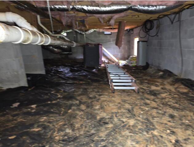 This crawlspace had a dirt floor and was musty, moist, and desperately in need of repair. To fix the problem, Master Services encapsulated the area with our CleanSpace® Crawl Space Vapor Barrier. This liner is durable and tear-resistant, and it keeps moisture from settling on wood and creating mold.
