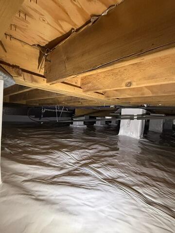 To prevent future moisture issues, we installed a full CleanSpace® Crawl Space Encapsulation System, wrapping the floors, walls, and piers in a durable vapor barrier. We also added SilverGlo® insulation to help improve energy efficiency and an EverLast™ Door for a tight, secure seal. A SaniDry™ Sedona dehumidifier with a condensate pump now keeps the space dry year-round, while new lighting and a dedicated electrical outlet improve accessibility and safety.
