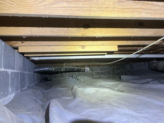 Crawl spaces play an important role in the overall health of a home, but when they are left exposed to ground moisture they can quickly become a source of humidity, musty odors, and poor indoor air quality. In this Soddy Daisy, TN home, the crawl space had a thin ground liner that had shifted over time, leaving sections of exposed soil and allowing moisture to rise into the space. When moisture enters a crawl space, it can create conditions that lead to mold growth, wood deterioration, and increased humidity levels throughout the home above.