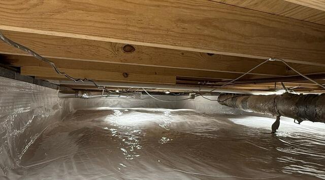 To solve these issues, our team at Master Foundation & Crawl Space Repair installed a full crawl space encapsulation system designed to isolate the space from ground moisture and create a controlled environment beneath the home. The crawl space floor and foundation walls were sealed with our CleanSpace® Crawl Space Encapsulation System, a durable vapor barrier that prevents moisture from evaporating into the crawl space. By sealing the space with CleanSpace, the system helps protect wooden framing, reduce humidity, and improve the overall air quality inside the home.
