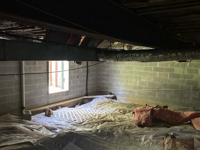 Our team transformed the space with a CleanSpace® encapsulation system (1,086 sq ft), creating a durable vapor barrier to keep moisture out. We removed old insulation and debris, then installed a SaniDry™ Sedona dehumidifier with intake and exhaust duct kits to keep humidity under control. For added convenience and safety, we included a condensate pump, new electrical outlet, and crawl space lighting with a switch. We also sealed nine vents and wrapped piers to complete the encapsulation, giving the crawl space lasting protection.